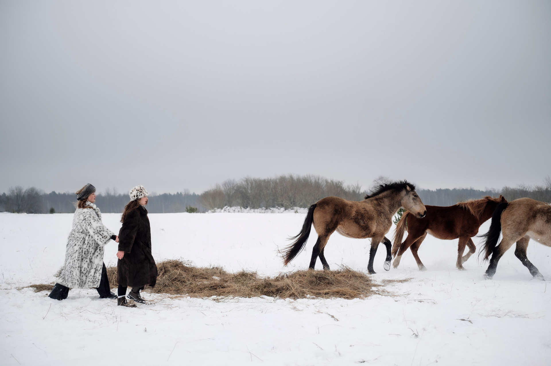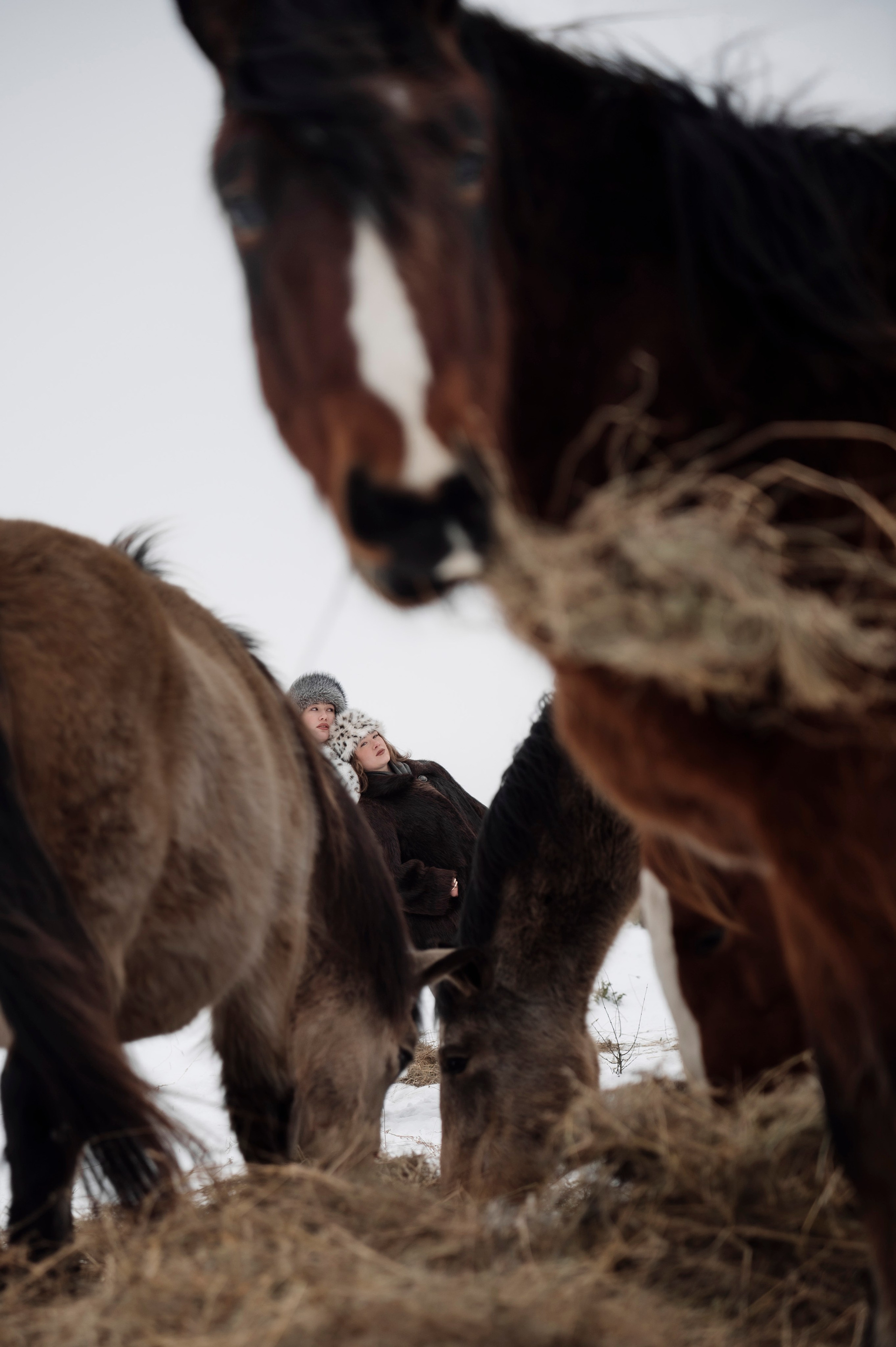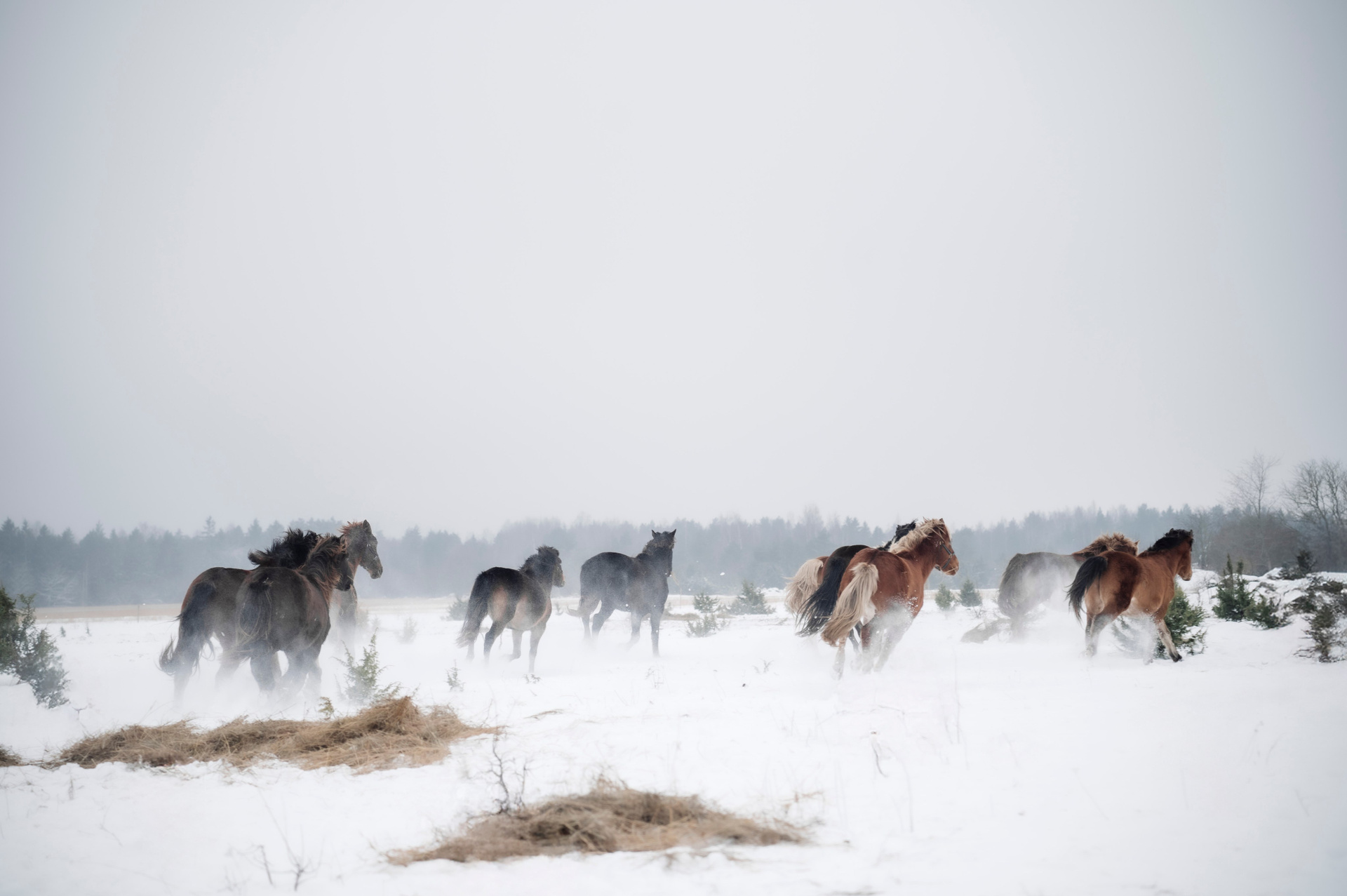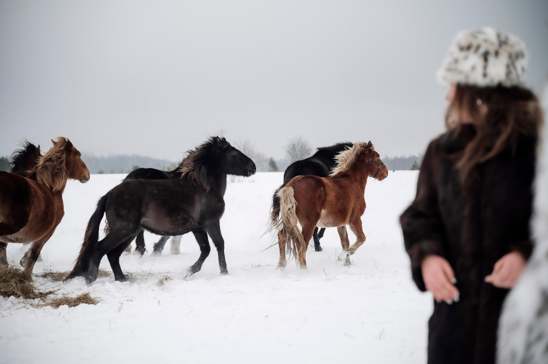 Табун лошадей очень робкий, но любопытный