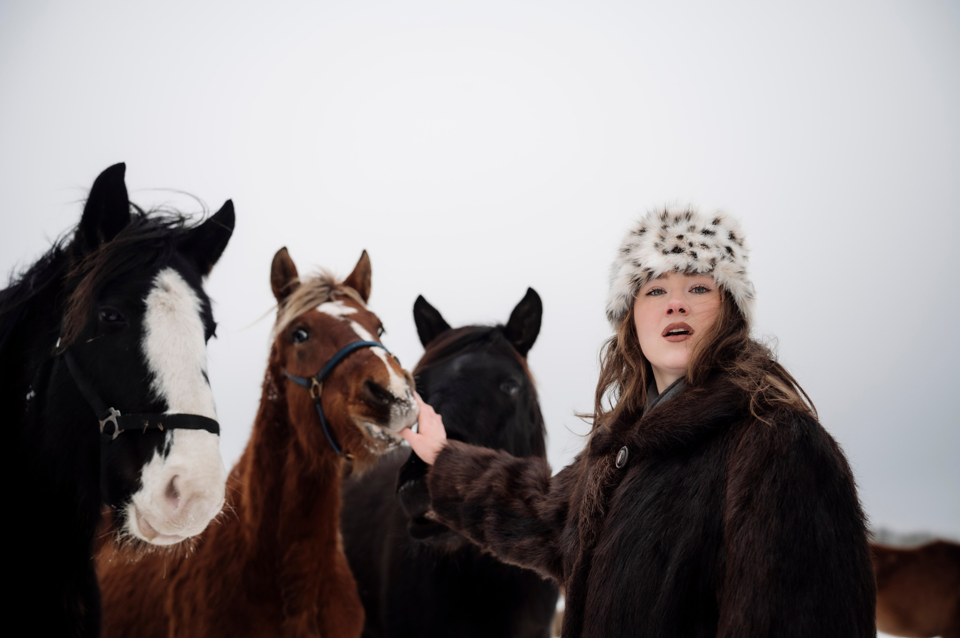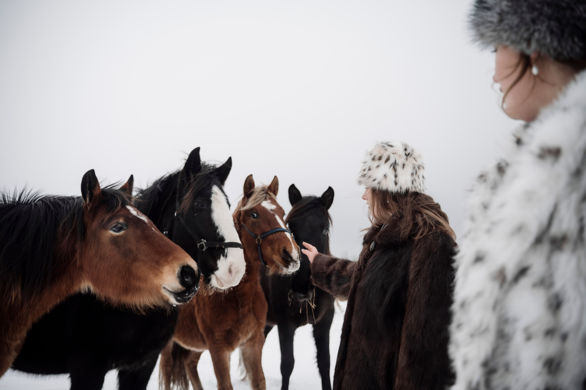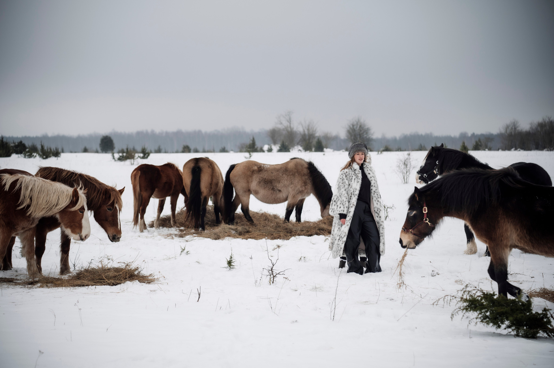 Табун лошадей очень робкий, но любопытный