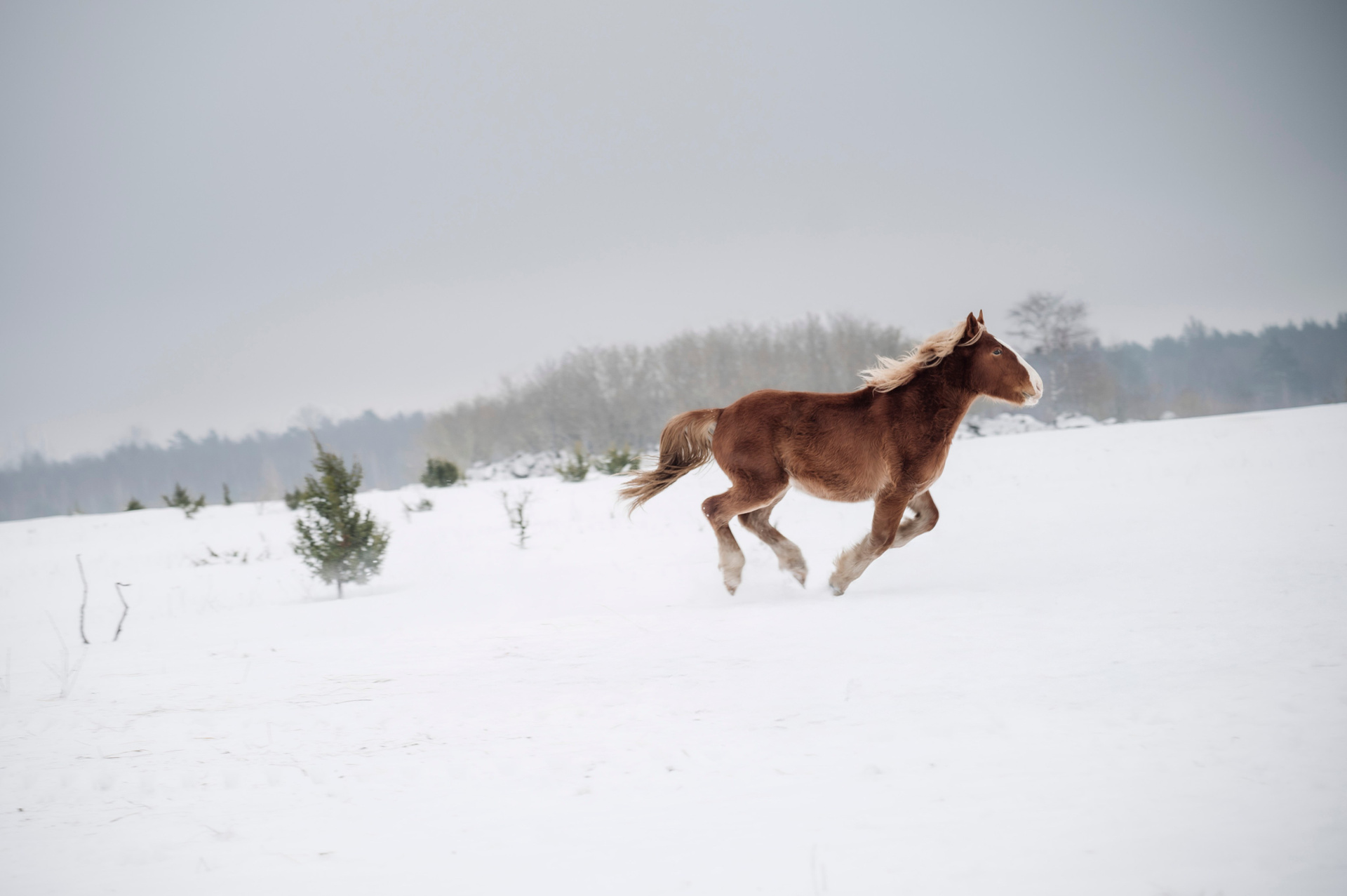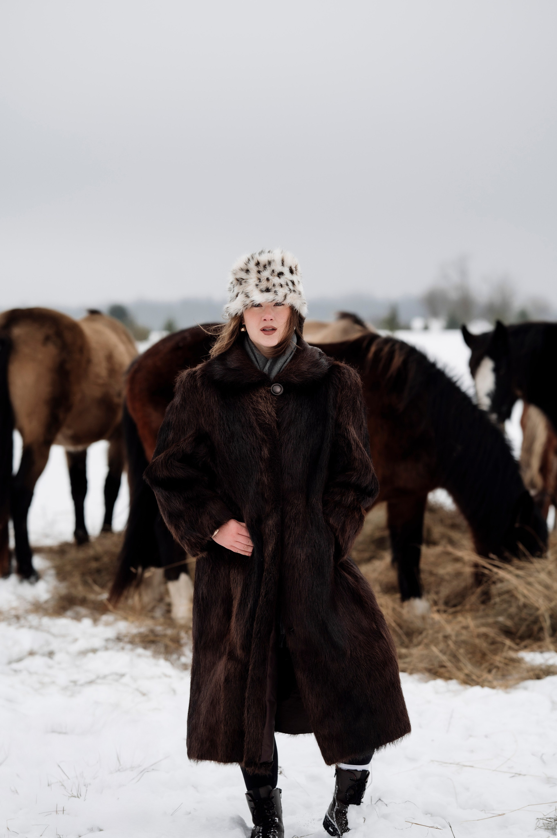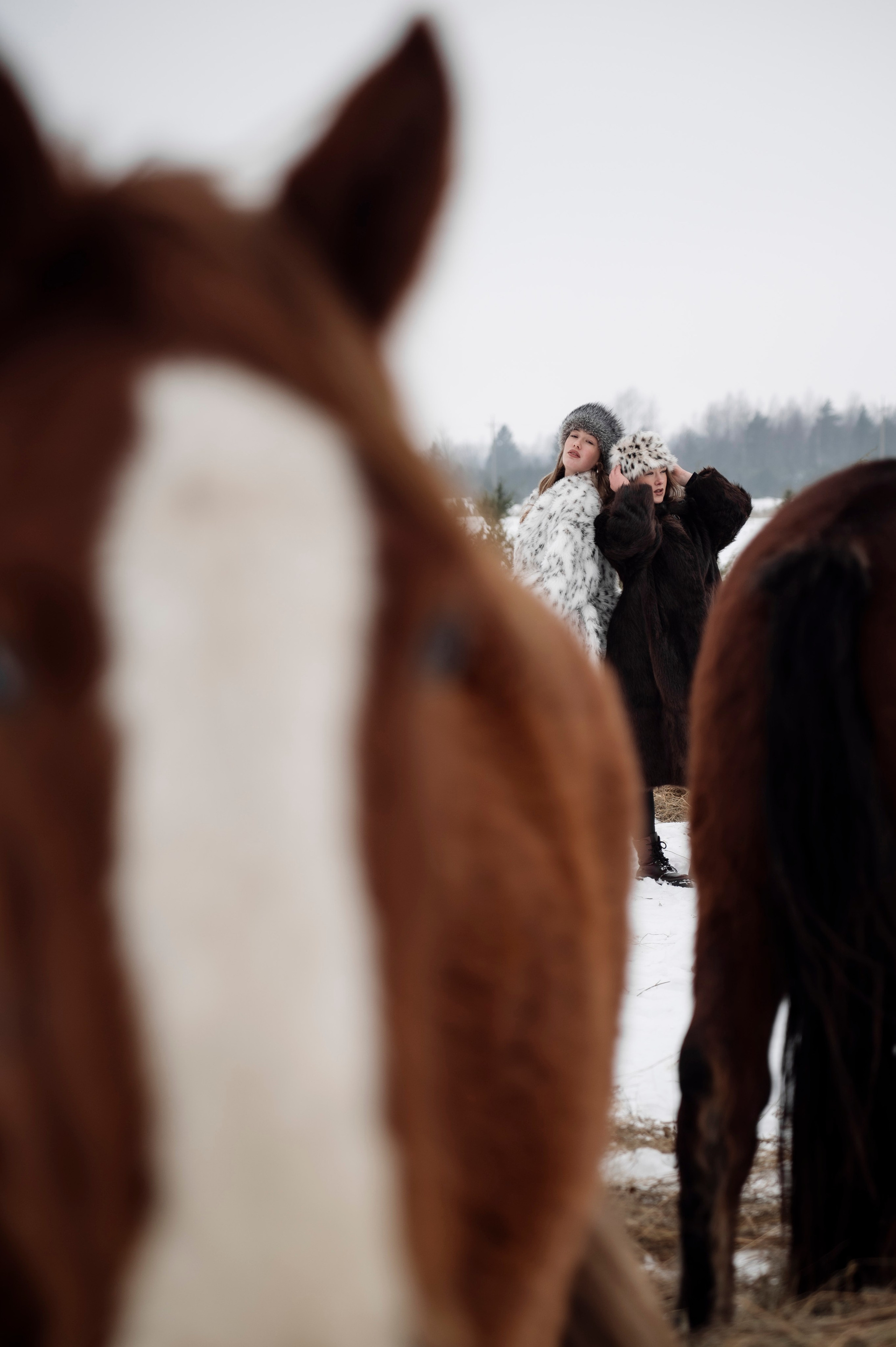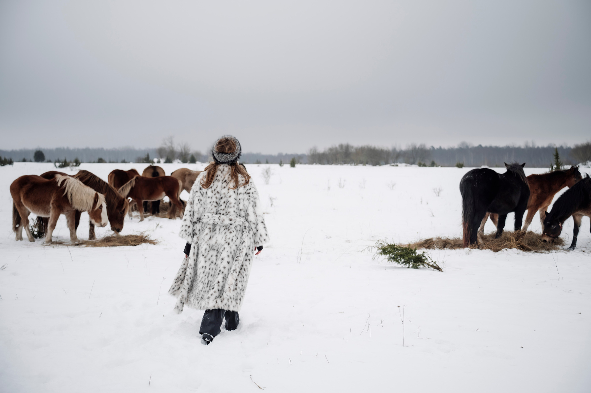 Табун лошадей очень робкий, но любопытный